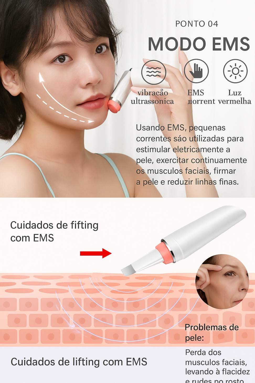 A espátula ultrassônica é ideal para limpar os poros de forma eficaz, removendo impurezas, células mortas e resíduos de maquiagem. Com vibrações ultrassônicas de alta frequência, este dispositivo promove uma limpeza profunda que é suave e não-agressiva para a sua pele. Sinta a diferença desde a primeira utilização! ✨